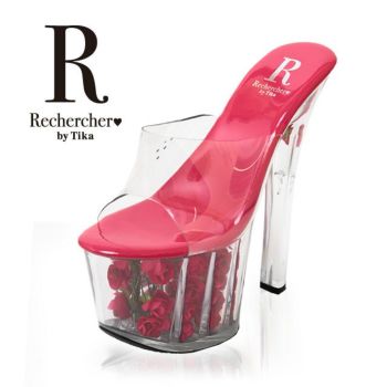 16.7cmヒール☆バラのモチーフが可愛いキャバドレスにピッタリなクリアサンダル♪ 【Rechercher/ルシェルシェ】キャバヒール 3段 薔薇デザイン クリアサンダル[レッド][22.5cm~25.0cm][16.7cmヒール]