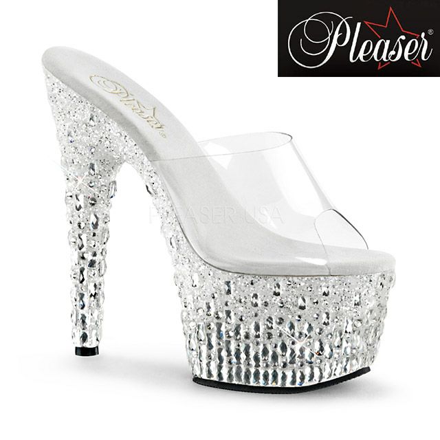 【PLEASER/プリーザー】キャバヒール ビジュー デザイン 厚底 ハイヒール クリア サンダル[シルバー][22.8cm~25.4cm][18cmヒール]