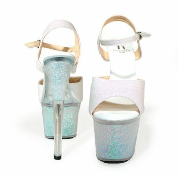 17cmヒール☆キラキラのグリッターラメが可愛いキャバドレスにピッタリなパンプス♪ 【Rechercher/ルシェルシェ】キャバヒール グリッター 厚底 ストラップデザイン ラメ サンダル[ホワイト][22.5cm~25.0cm][17cmヒール]
