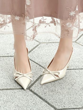 4. リボンデザイン ポインテッドトゥ スリングバック パンプス(オフホワイト)