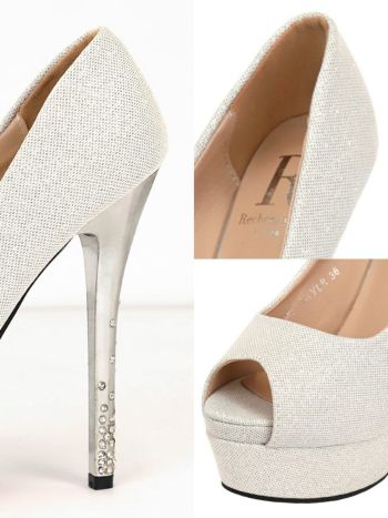 3. 【Rechercher/ルシェルシェ】ラメ ビジュー オープントゥ パンプス (シルバー)