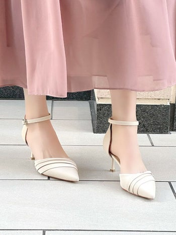 5. ポインテッドトゥ セパレート アンクルストラップ付き パンプス(オフホワイト)