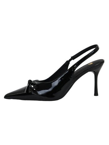 8cmヒール☆艶やかな質感で高見えを叶える♪ ポインテッドトゥ スリングバック リボンデザイン パンプス(ブラック)