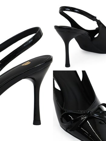 5. ポインテッドトゥ スリングバック リボンデザイン パンプス(ブラック)