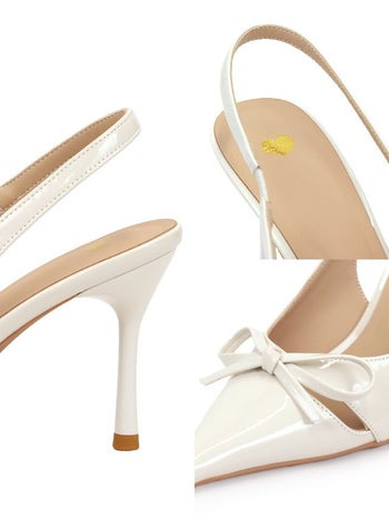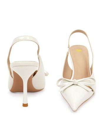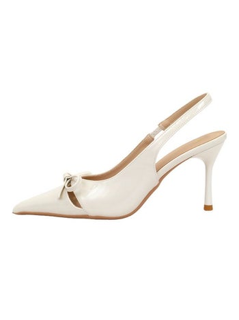 4. リボンデザイン ポインテッドトゥ スリングバック パンプス(オフホワイト)