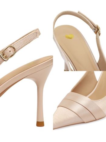 4. サテン ポインテッドトゥ スリングバック パンプス(ベージュ)