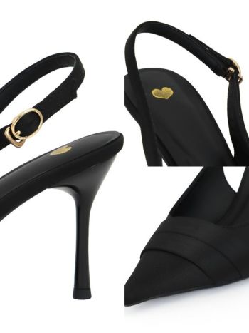 4. ポインテッドトゥ スリングバック サテン パンプス(ブラック)
