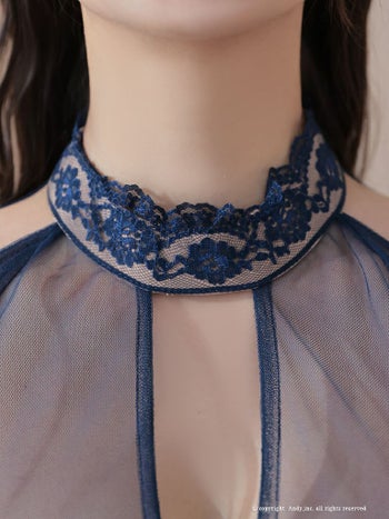 5. 【Andy/アンディ】レース 飾りボタン 長袖 シースルー 肩あき フレアミニドレス(anon2826)