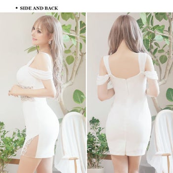 3. SALE【Angel R/エンジェルアール】セクシー オープンバスト 肩あき フラワーデザイン ビジュー タイトミニドレス (AR24831)