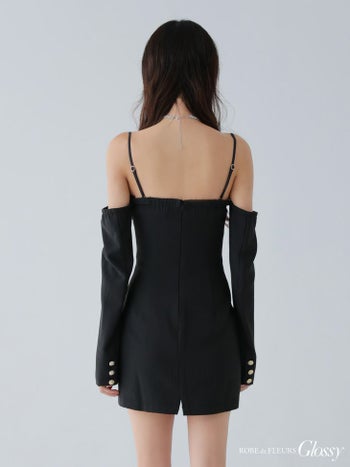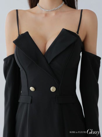 3. 【Glossy by ROBE de FLEURS/グロッシー】テーラード風 肩あき 長袖 2way セクシー タイトミニドレス (GL3933)