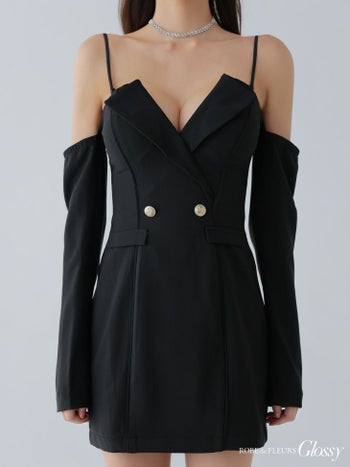 5. 【Glossy by ROBE de FLEURS/グロッシー】テーラード風 肩あき 長袖 2way セクシー タイトミニドレス (GL3933)