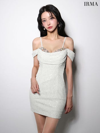 4. 【IRMA/イルマ】肩あき バストビジュー スパンコール ラメニット タイトミニドレス (51990)