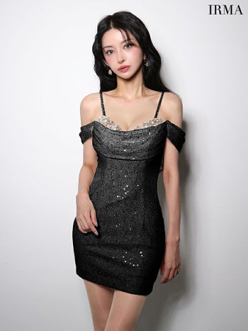 3. 【IRMA/イルマ】肩あき バストビジュー スパンコール ラメニット タイトミニドレス (51990)