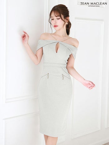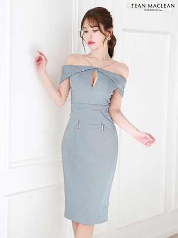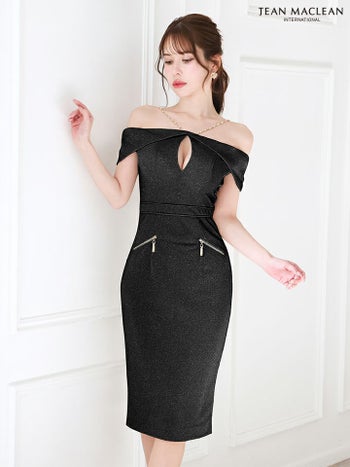 キャバドレス JEANMACLEAN ジャンマクレーン セクシー バストカット 肩あき ラメニット 膝丈ドレス
