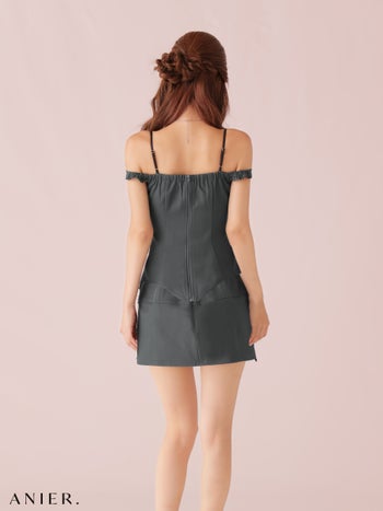3. 【ANIER./アニエル】セットアップ 肩あき ジップデザイン リボン レイヤード レース タイトミニドレス (anier4060)