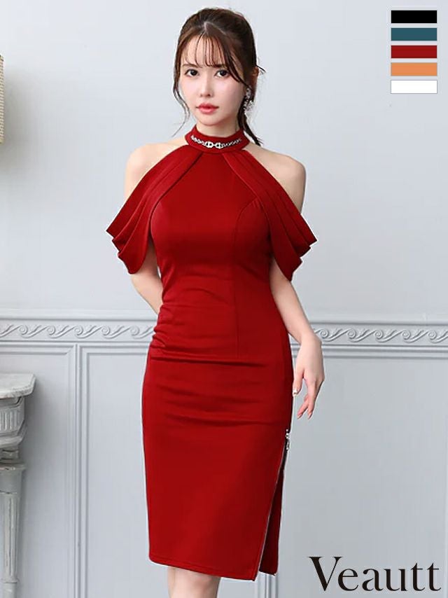 他の画像を見る XSあり!気になる二の腕もカバー♪ 【Veautt/ヴュート】肩あき チェーン ホルターネック ジップデザイン タイト 膝丈ドレス(VT022410) ¥ 29,480 税込 詳細を見る お気に入りに登録する