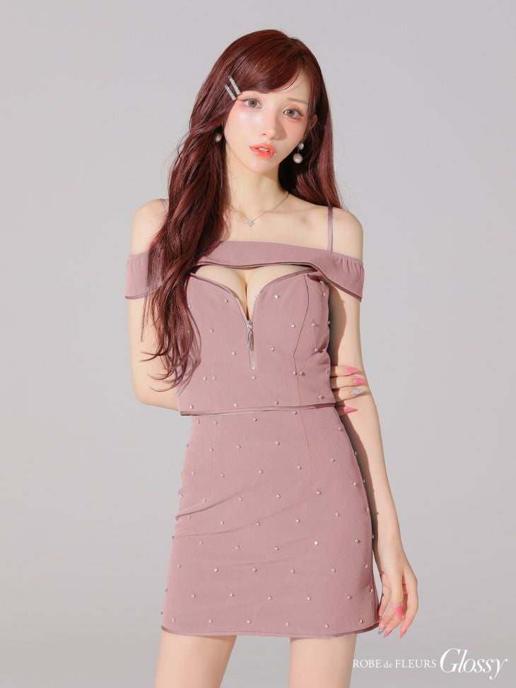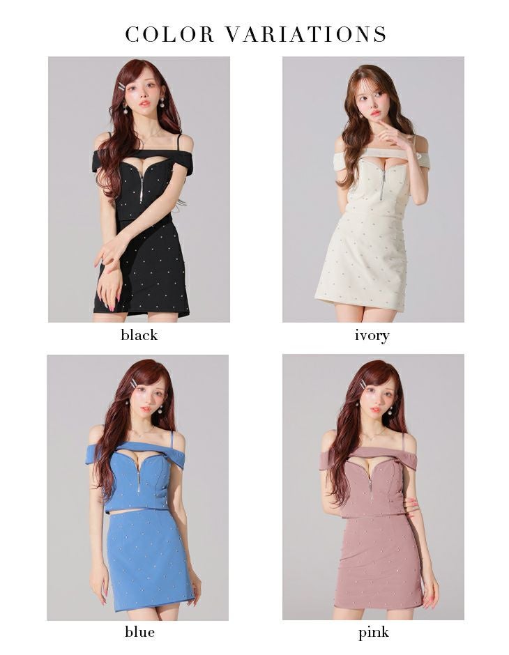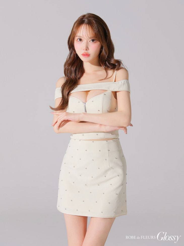 他の画像を見る XSあり!高級感抜群♡ 【Glossy by ROBE de FLEURS/グロッシー】肩あき ビジュー セットアップ セクシー バストカット ジップデザイン タイトミニドレス (GL4106) ¥ 28,380 税込 詳細を見る お気に入りに登録する