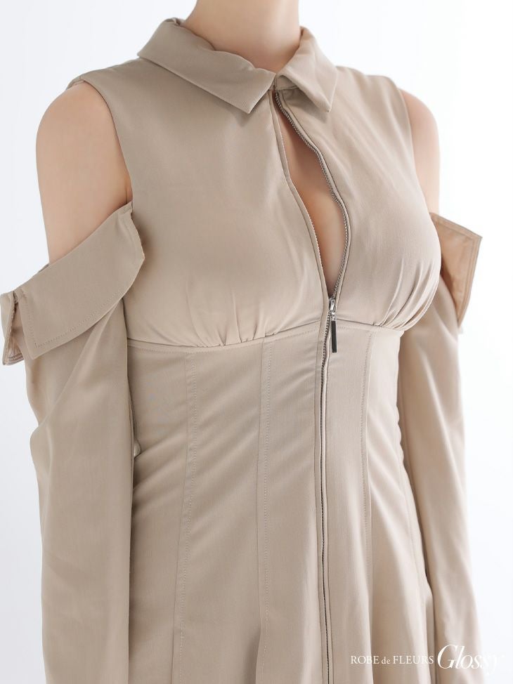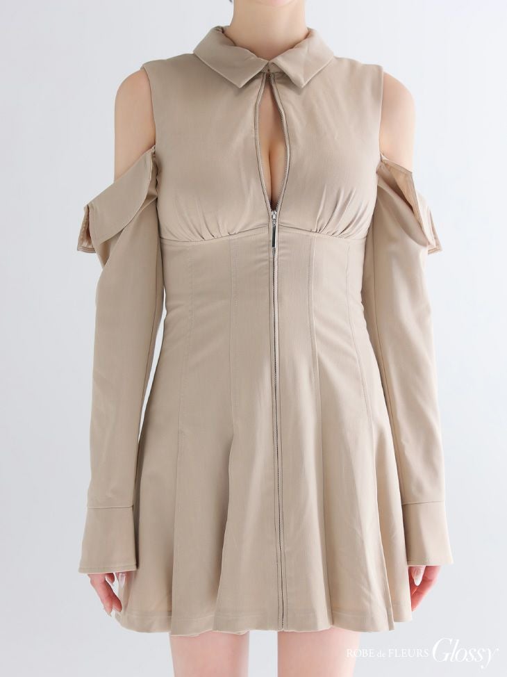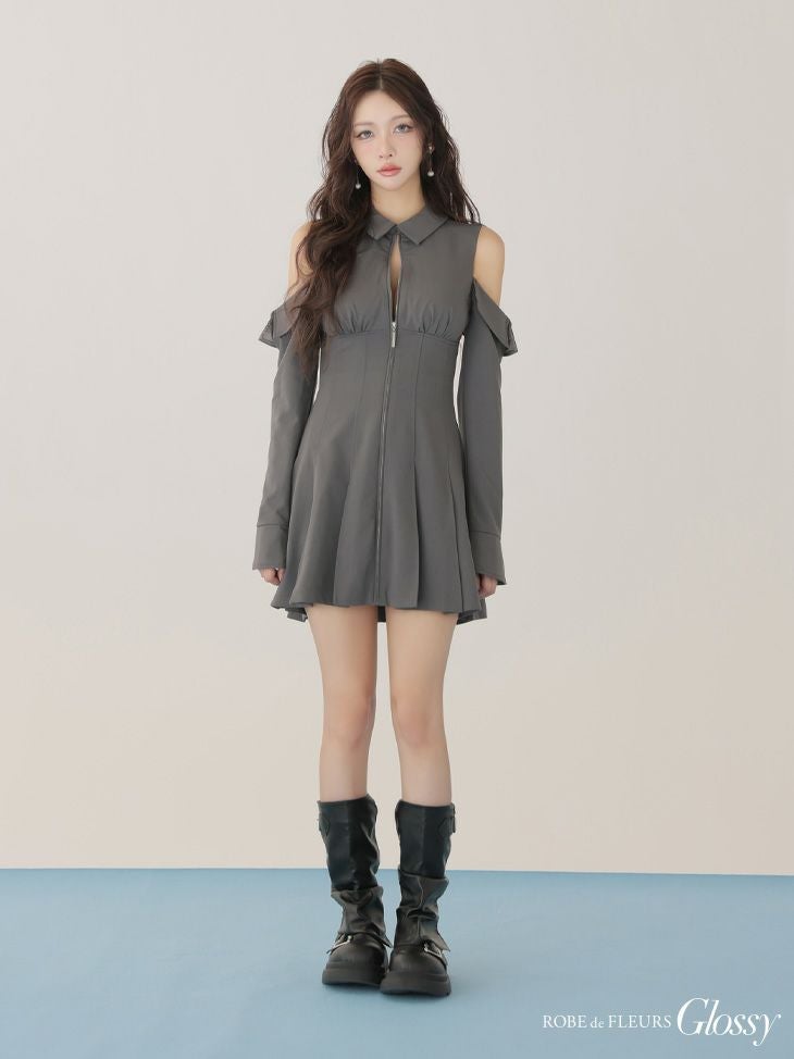 他の画像を見る XSあり!大胆肩見せデザイン♪ 【Glossy by ROBE de FLEURS/グロッシー】襟付き プリーツスカート 肩あき ジップデザイン 長袖 フレアミニドレス (GL4126) ¥ 28,380 税込 詳細を見る お気に入りに登録する