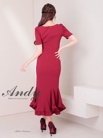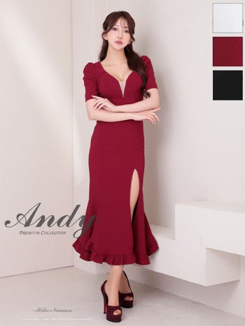 キャバドレス Andy アンディ フリル ワンカラー スリット シンプル 袖あり マーメイドロングドレス