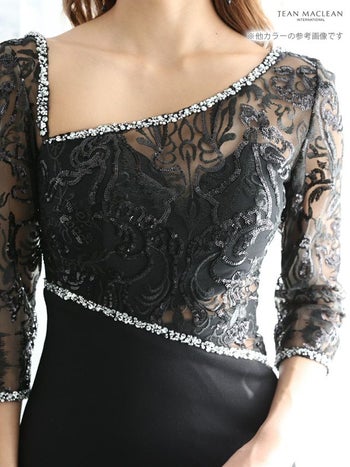JEANMACLEANの品番jm-ld-11879のレース×スパンコール刺繍バイカラー七分袖タイトロングドレス