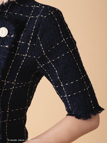 3. 【Andy/アンディ】ゴールドボタン チェック柄 ハイネック 袖あり タイトミニドレス(AN-ON2789)