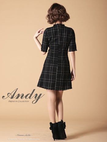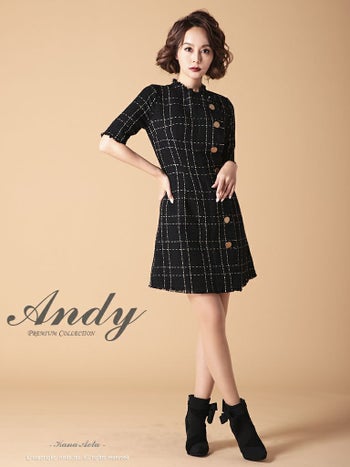嬉しい袖ありで気になる腕周りもカバーできちゃう☆ 【Andy/アンディ】ゴールドボタン チェック柄 ハイネック 袖あり タイトミニドレス(AN-ON2789)