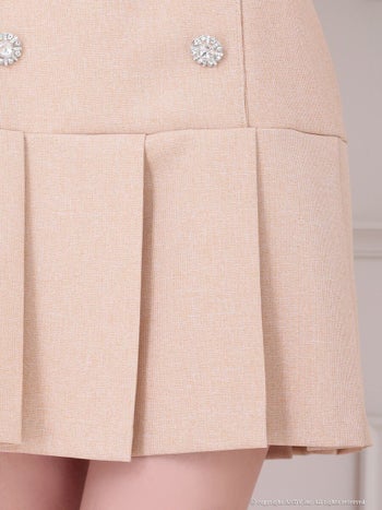 襟付き 袖あり パフスリーブ ビジューボタン プリーツ Vカット フレアミニドレスのメイン画像3