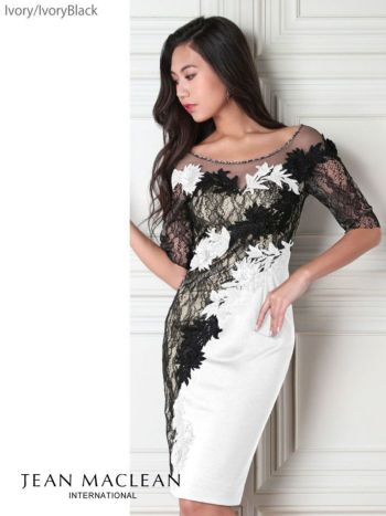 4. 【JEANMACLEAN/ジャンマクレーン】フラワーレース 袖あり タイトミニドレス