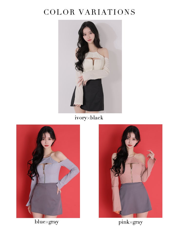 他の画像を見る XSあり!シンプルなのに色っぽい♡ 予約商品【3月上旬入荷予定】【Glossy by ROBE de FLEURS/グロッシー】肩あき セットアップ 長袖 チェーンストラップ ジップデザイン バイカラー バストカット フレアミニドレス (GL4160) 予約 ¥ 31,680 税込 詳細を見る お気に入りに登録する