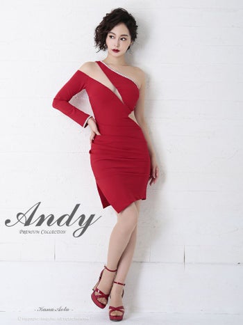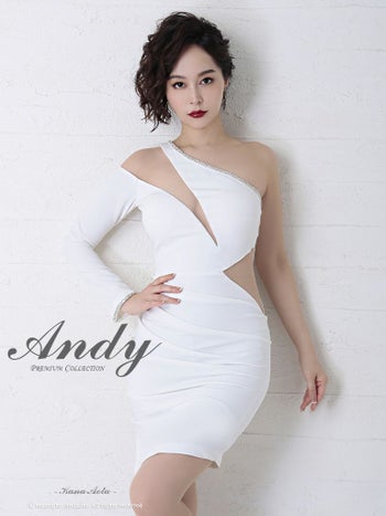 キャバドレス Andy アンディ アシンメトリー くびれ透け ワンカラー ワンショルダー 長袖 タイトミニドレス