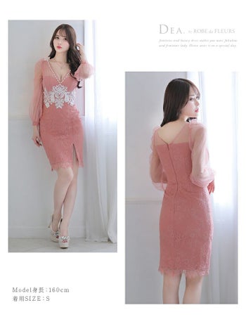 大人かわいいフェミニンな高級キャバ ワンピース♪ 【DEA.by ROBE de FLEURS/ディア】チュール長袖×レース タイトミニドレス[Lあり][2352]