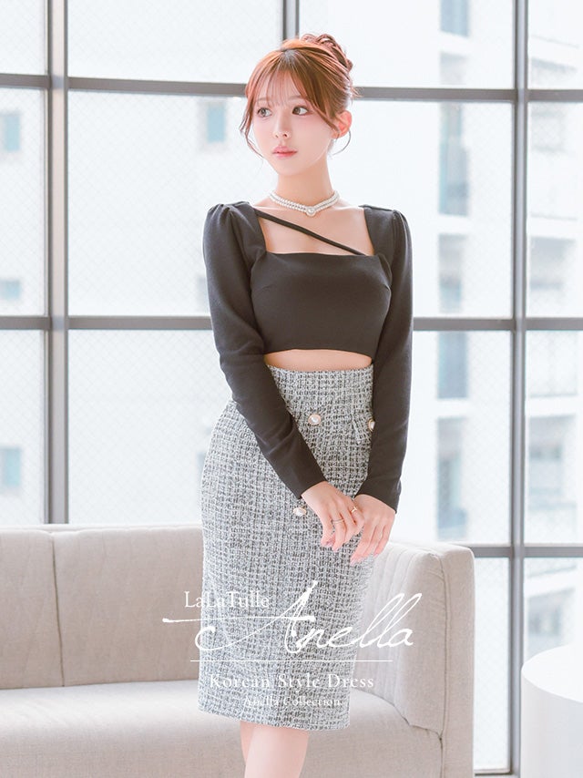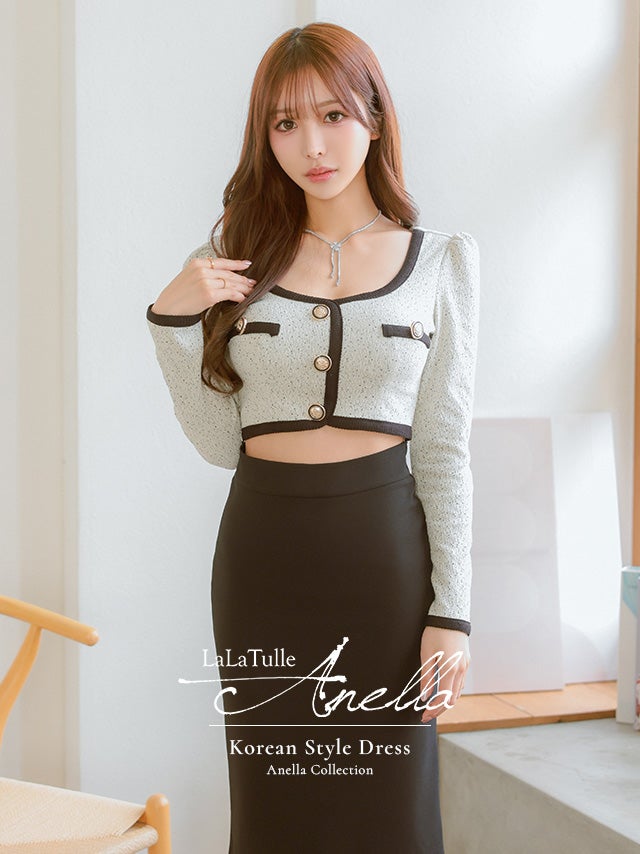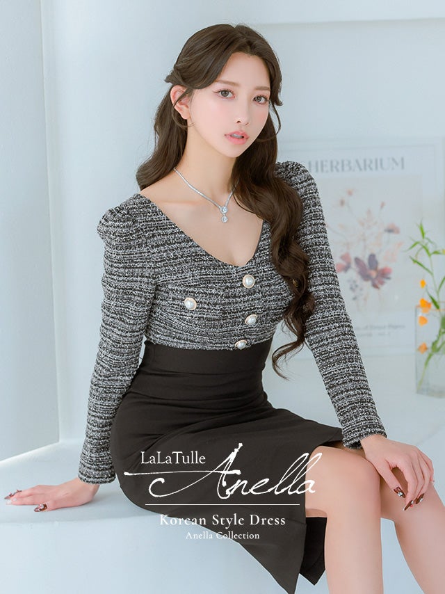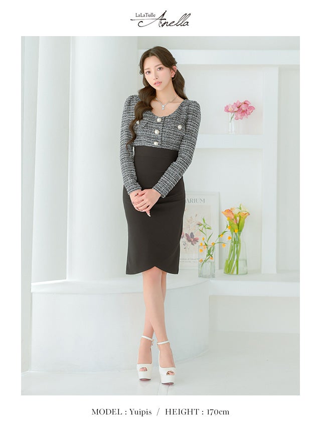 他の画像を見る Lあり!気品さ溢れる一着♡ 【Anella/アネラ】長袖 ゴールドボタン ウエストカット パイピング ツイード モノトーン タイト 膝丈ドレス 即日発送 ¥ 16,500 税込 詳細を見る お気に入りに登録する