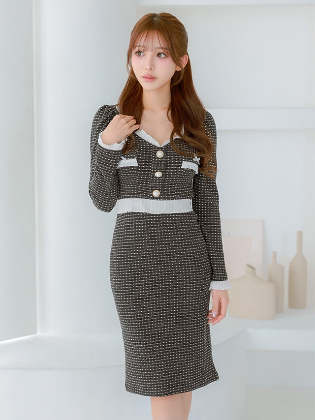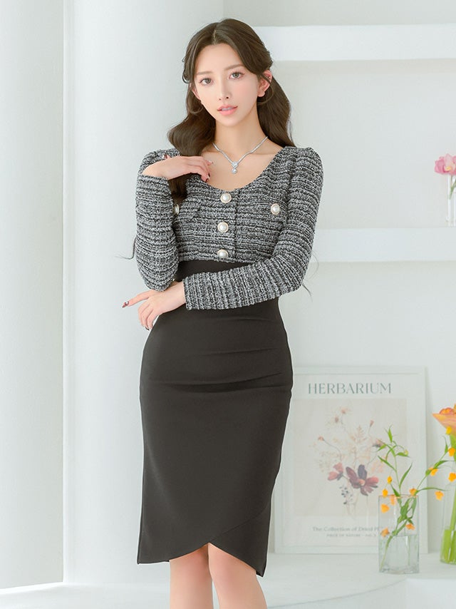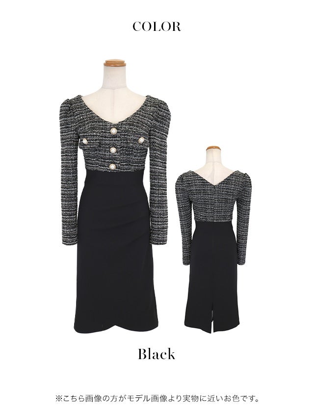 他の画像を見る Lあり!程よいチラ見せで視線を釘付けに♡ 【Anella/アネラ】長袖 ツイード パールボタン ウエストカット スクエアネック タイト 膝丈ドレス 即日発送 ¥ 16,500 税込 詳細を見る お気に入りに登録する