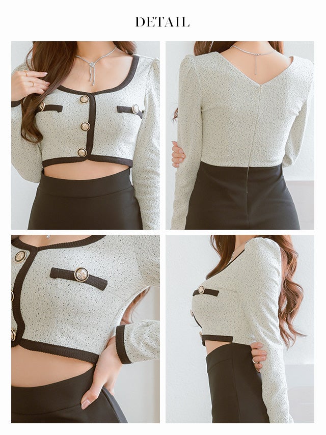他の画像を見る Lあり!バストジップでしっかり肌見せ☆ 【Glossy by ROBE de FLEURS/グロッシー】セクシー オープンバスト ジップデザイン 長袖 ツイード ジャケット セットアップ フレアミニドレス (GL3356) ¥ 32,780 税込 詳細を見る お気に入りに登録する