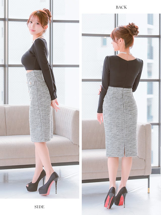 他の画像を見る Lあり!女子会にもぴったり♪ 【Anella/アネラ】ツイード 長袖 パールボタン チューリップスカート タイト 膝丈ドレス 即日発送 ¥ 16,500 税込 詳細を見る お気に入りに登録する