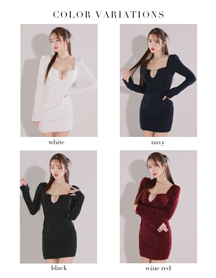 他の画像を見る XSあり!大胆カットでセクシー魅せ☆ 【Glossy by ROBE de FLEURS/グロッシー】長袖 スクエアカット バックリボン セクシー チェーン ワンカラー タイトミニドレス (GL3195) ¥ 28,380 税込 詳細を見る お気に入りに登録する