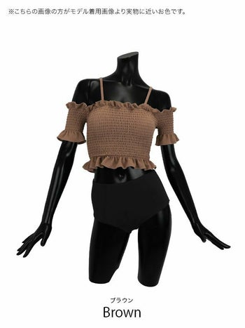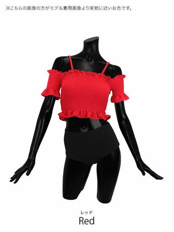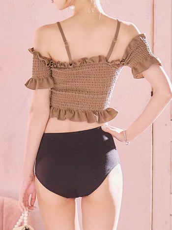 4. 【水着】ガーリー オフショルダーデザイン シャーリングギャザー ビキニ
