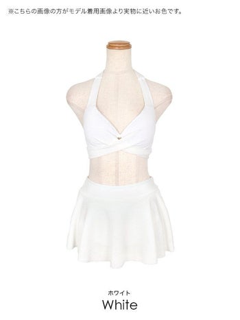 水着 ホルターネック クロスデザイン パイル風 セットアップ ビキニ(ホワイト)(M/L) [聖菜/水着着用]
