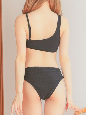 水着 アシメショルダー カットアウト バンドゥ ワッフル生地 ギャル ビキニ