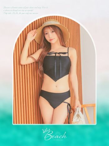 3. SALE【水着】リボン コードデザイン ワンカラー タンキニ 体型カバー ギャル ビキニ