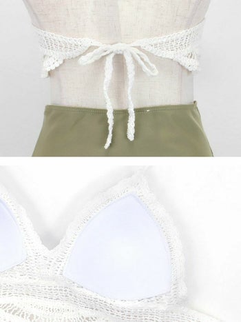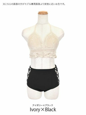 4. 【水着】シンプル サイドカット かぎ編みホルターネック ハイウエスト ビキニ