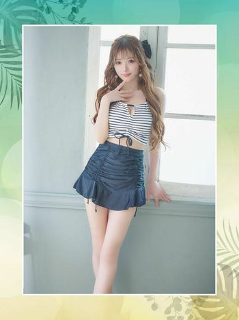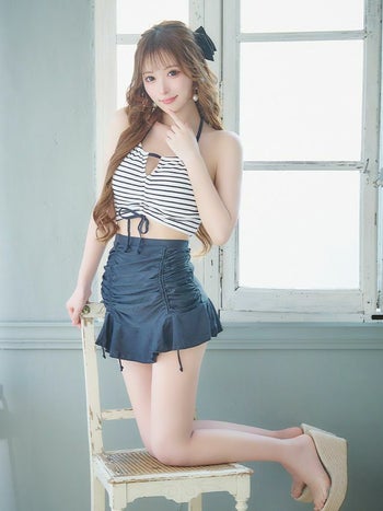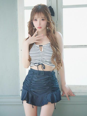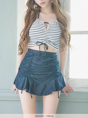 4. 【水着】ドロストフリルスカート ボーダーホルターネックセパレート ビキニ