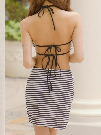 4. 【水着】ボーダー バンドゥホルターネック スカート付き ビキニ