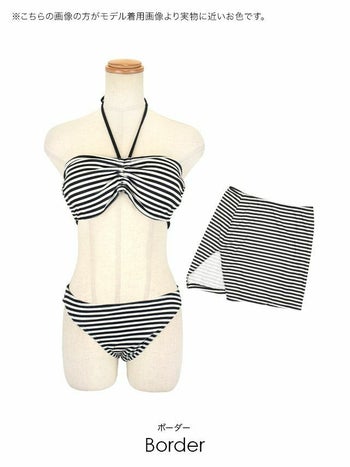 ボーダー バンドゥホルターネック スカート付き ビキニ
