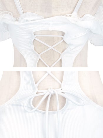 バックシャンなレースアップが目を惹く、キュートなモノキニビキニ♡