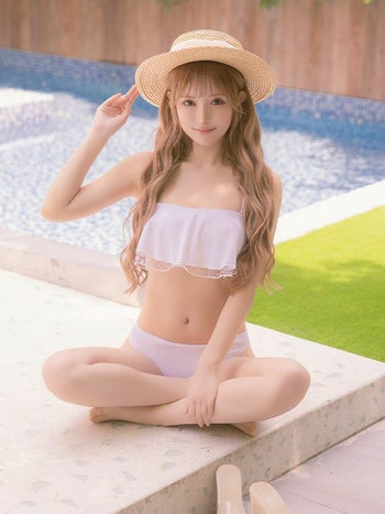 あざとエロい天使のような可愛さ☆ 【水着】ラブリー ドットレース バストフリル バックレースアップ チェック柄 モノキニ ビキニ