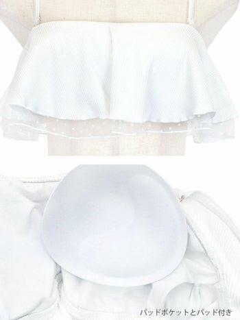 4. 【水着】ラブリー ドットレース バストフリル バックレースアップ チェック柄 モノキニ ビキニ