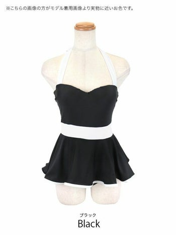 韓国風 バイカラー フリルワンピース ホルターネック モノキニビキニ
