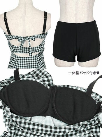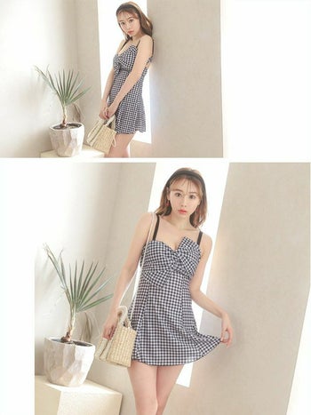 4. 【水着】ガーリー ギンガムチェック ワンピース バストリボン ビキニ