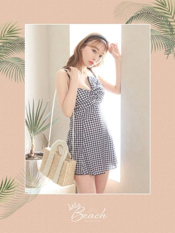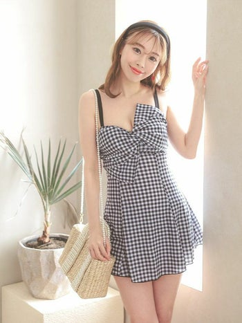ガーリーでキュートなワンピース水着♡ 【水着】ガーリー ギンガムチェック ワンピース バストリボン ビキニ